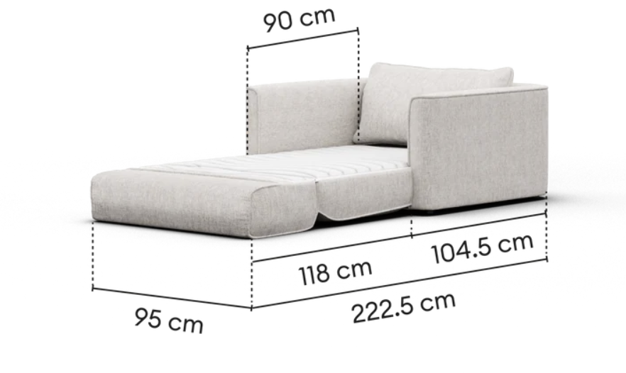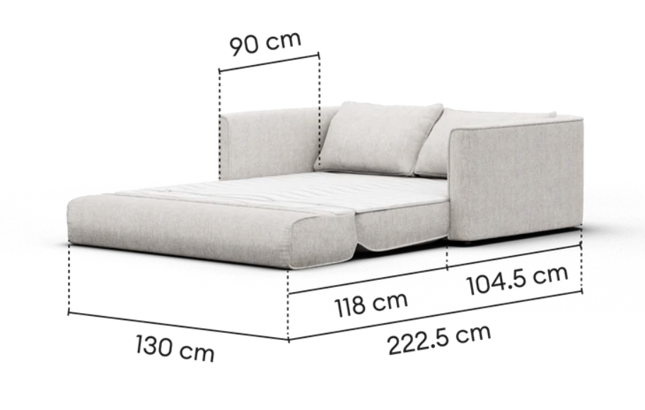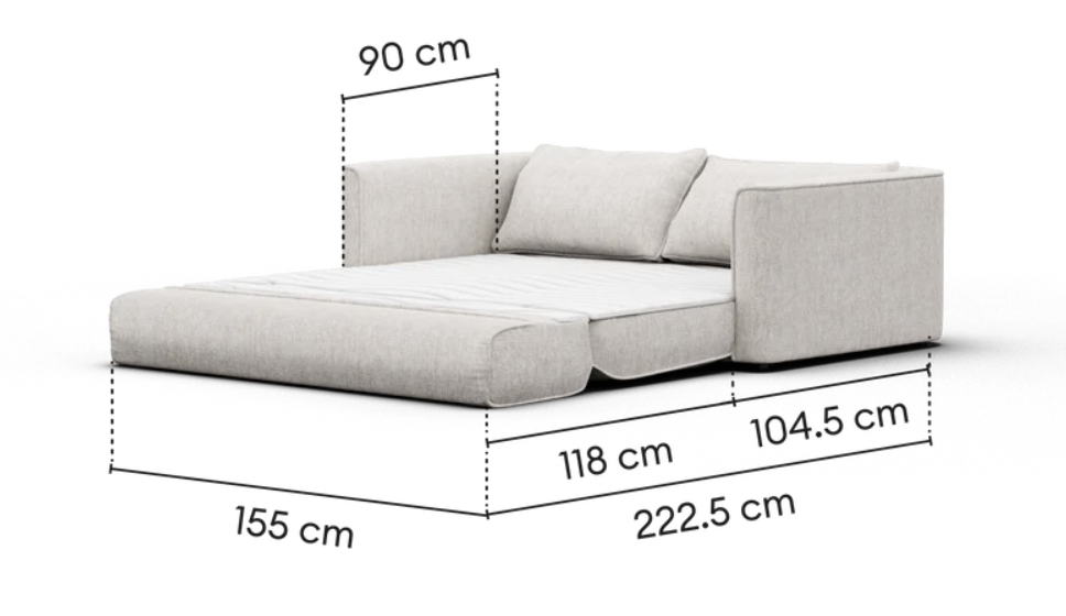 The Koala Sofa Bed is available in 3 sizes. The 1.5 seater which is ideal for kids (and opens up to a single mattress), the 2.5 seater (which converts to a double size mattress), and the 3 seater (which converts into a queen mattress).