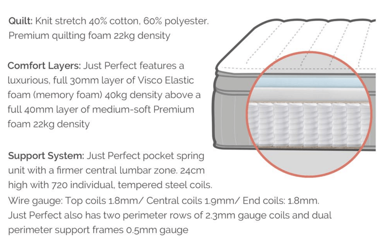 The Just Perfect comfort layers feature the amazing body-conforming properties of a full layer of premium memory foam.