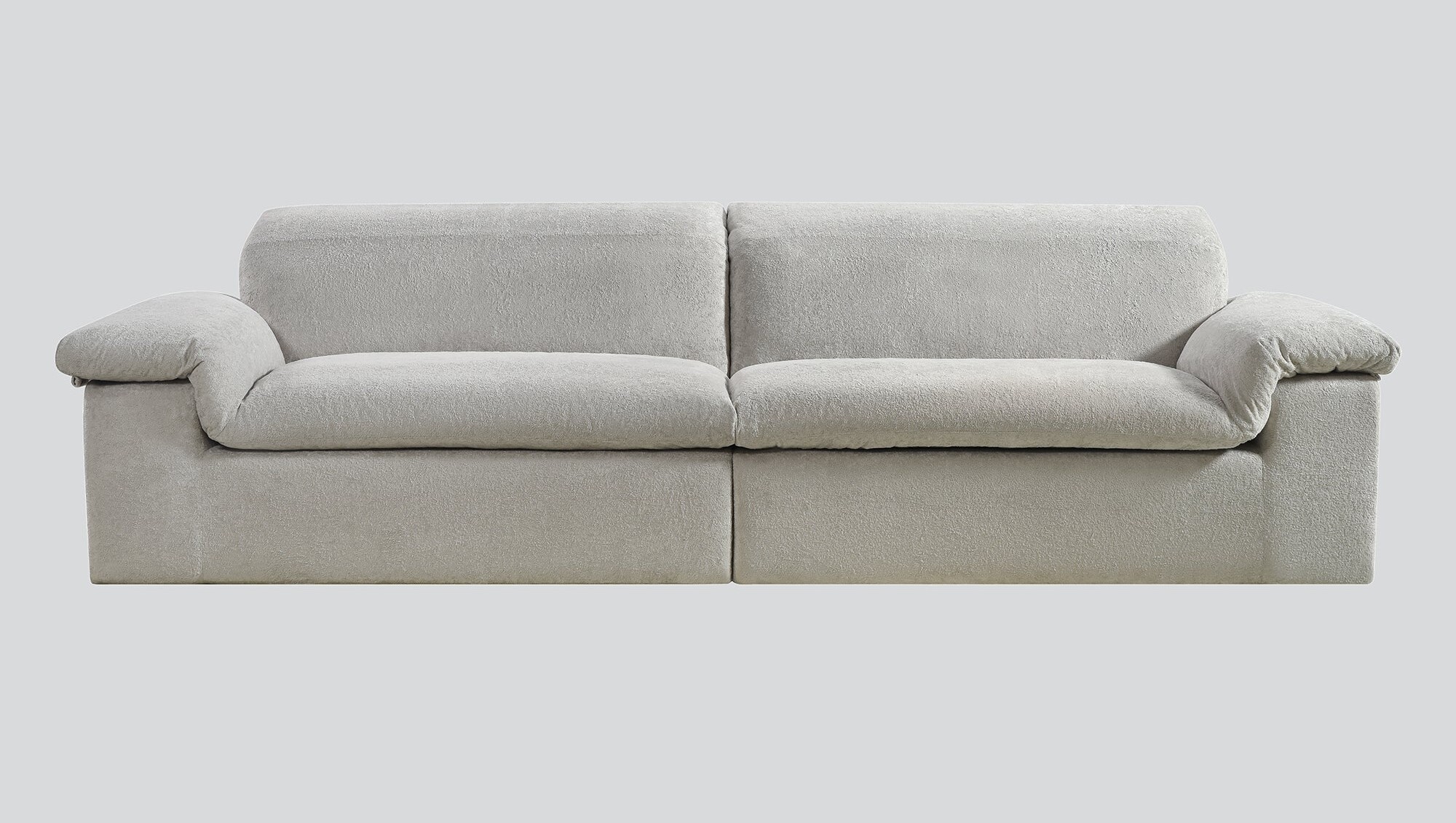 Externally, the sofa is upholstered in a soft plush fabric, made from a 100% premium polyester cover. This material gives the Torino its clean, refined appearance while maintaining a soft, textured finish.